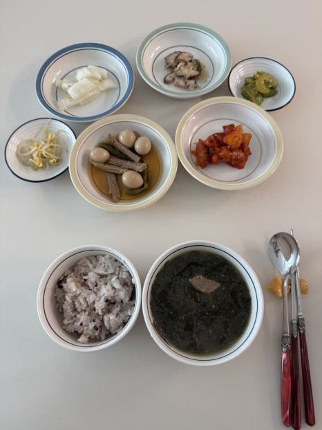 참고로 음식은 재료 준비가 되어있어야 해요. 관리사님이 이거 해줄 테니 사놓으라고 했지만 전 장을 부지런히 못 봐서 거의 같은 재료만 내내 준비해 놔서 메뉴가 크게 다양하진 못했네요.