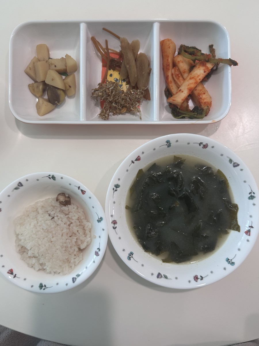 가끔 집에서 유부초밥이나 볶음밥도 해서 가져다주시고 좋아한다고 지나가는 말로 얘기했었는데 밤이랑 떡도 챙겨주셔서 간식으로 먹었었어요. 다시 생각해도 너무 감사하네요 ㅎ