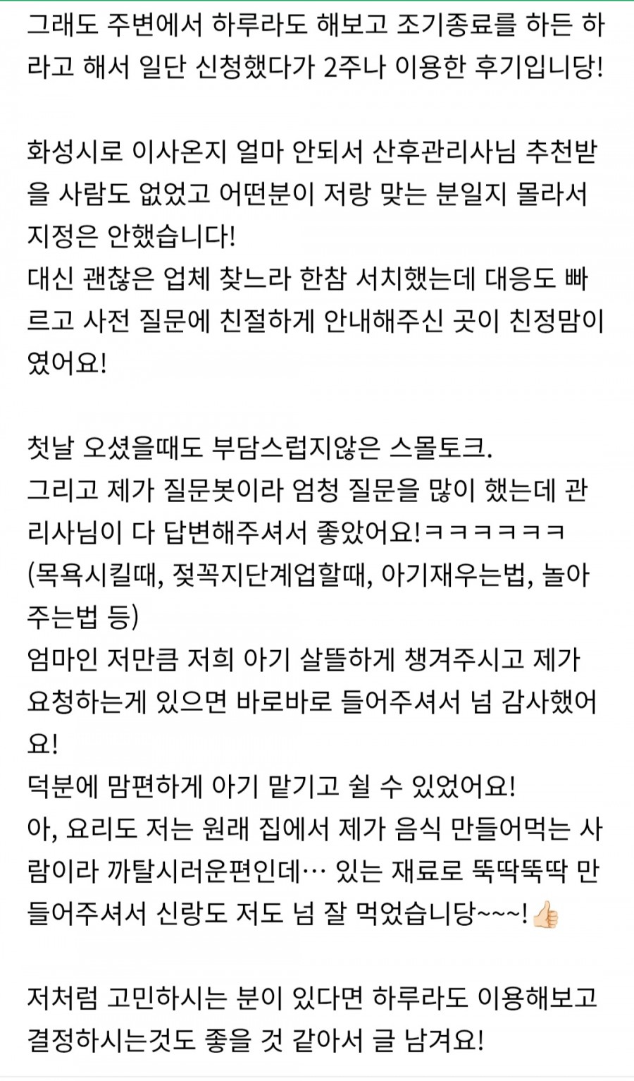 새솔동 산후도우미 이용후기