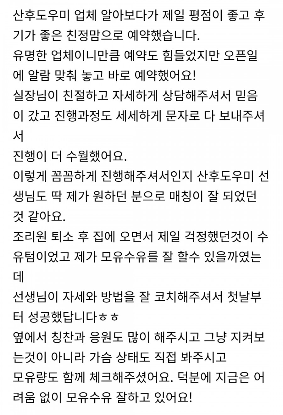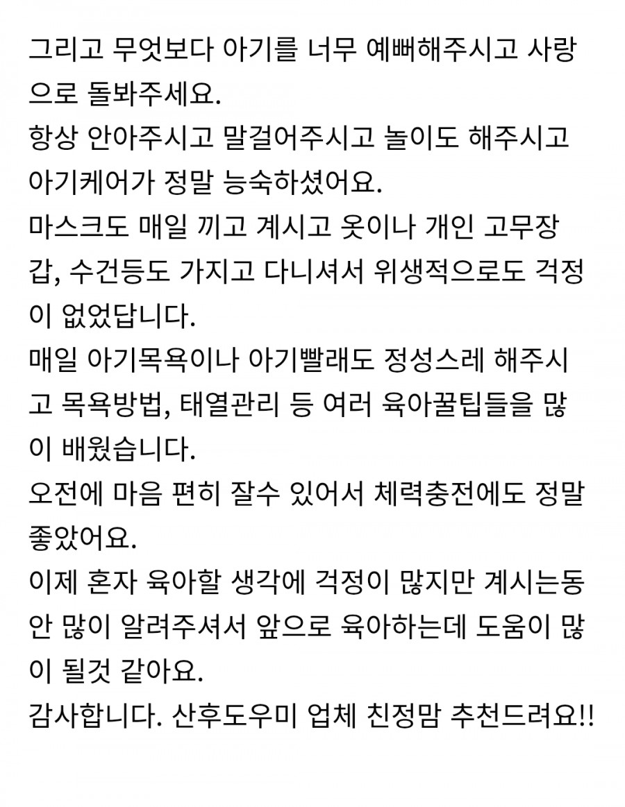 꼼꼼하고 아기 이뻐해주신 친정맘 산후도우미