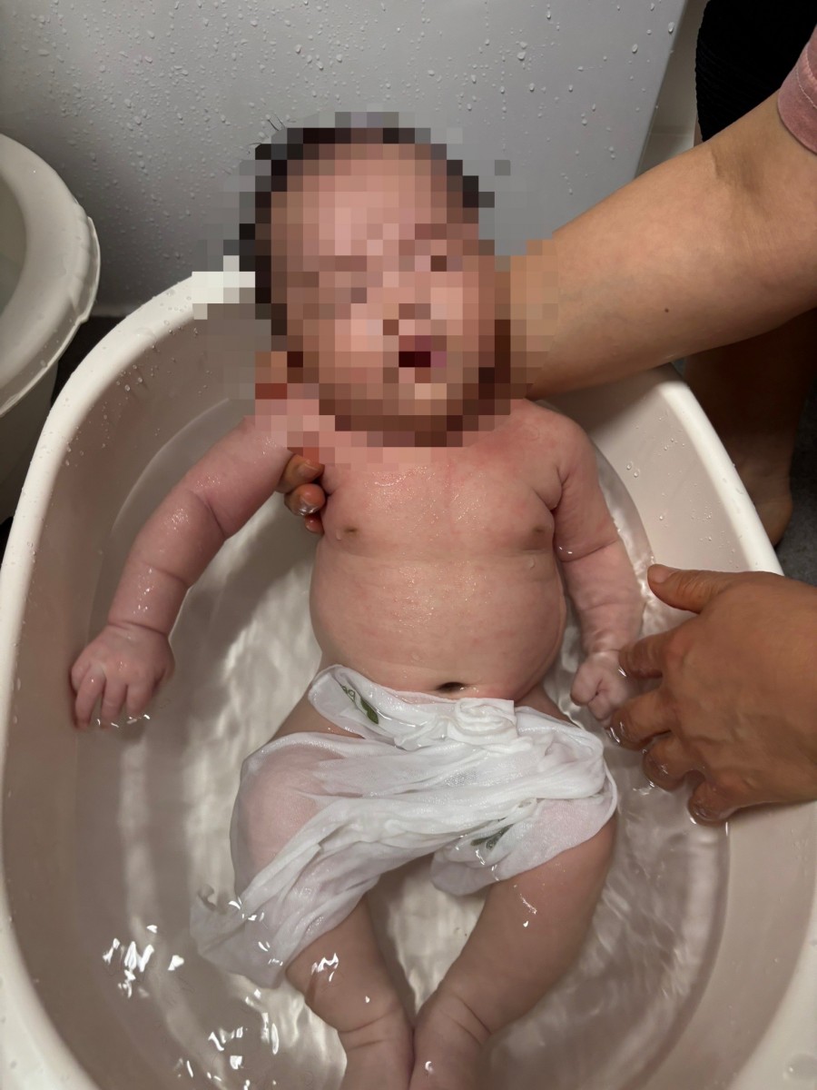 저희부부가 할때는 엄청 우는데 이모님이 씻겨주시니까 편안히 있더라구요 ㅋㅋ